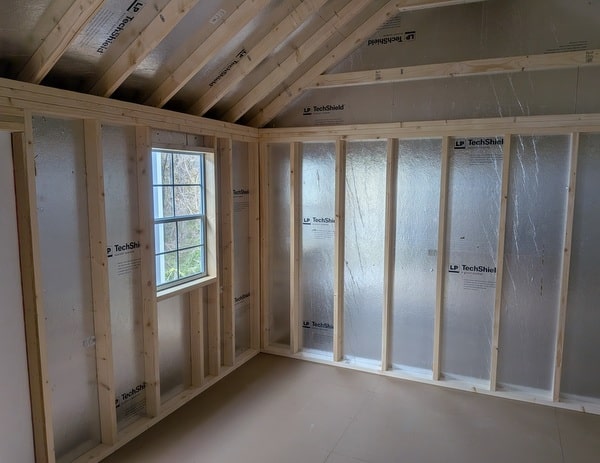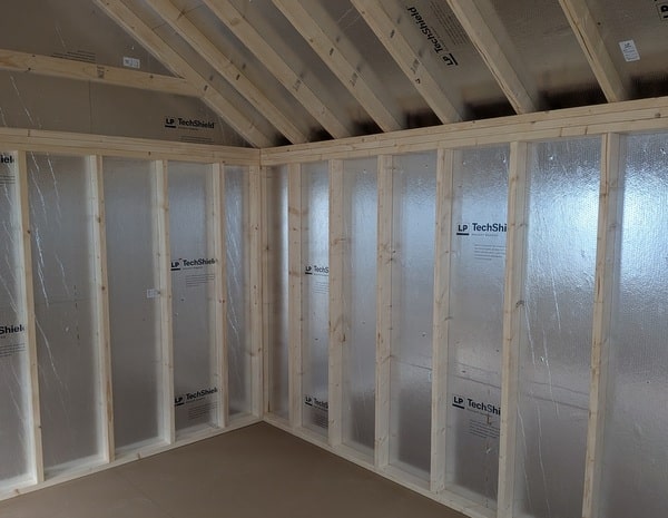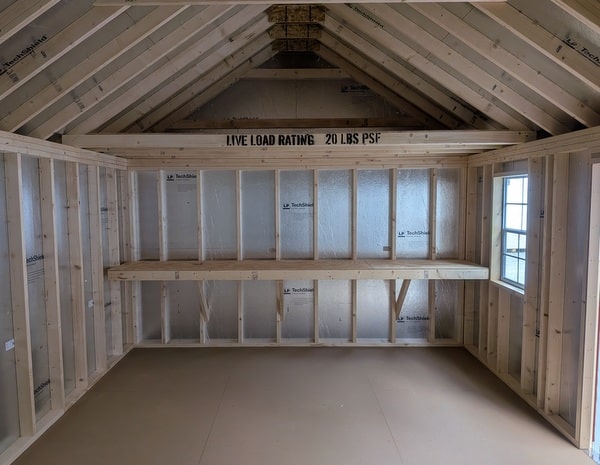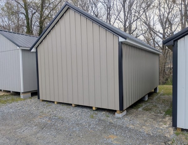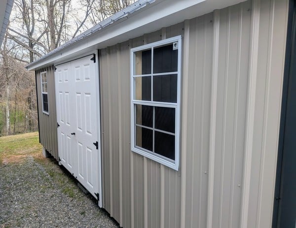 This Metal Garden Shed has Taupe Metal Siding, White Trim, Black Metal Roof, Corners and J Channel. The extra features it comes with is (1) 12′ Loft, (1) 12′ Workbench, Tech Shield on the Walls and L P Pro Struct Flooring upgrade.